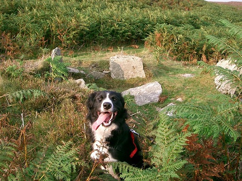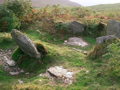 Beddau Folau Chambered Tomb, a Neolithic chambered tomb, 8m in diameter. Map Ref: SN921 659