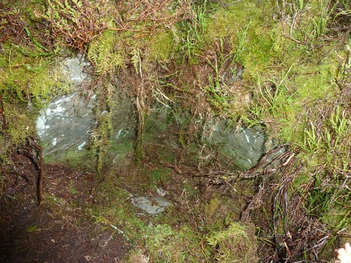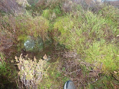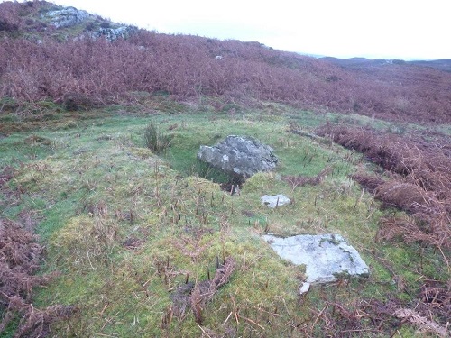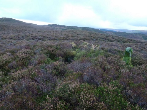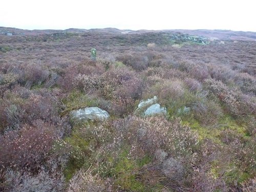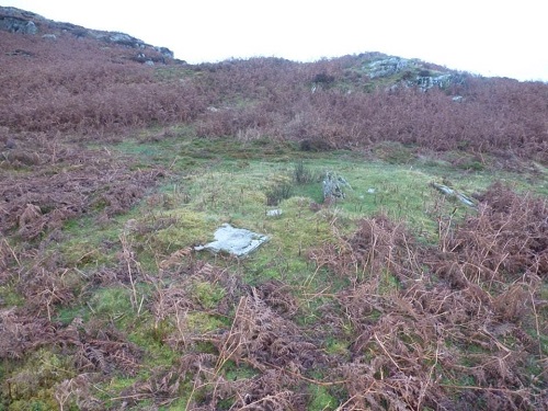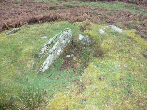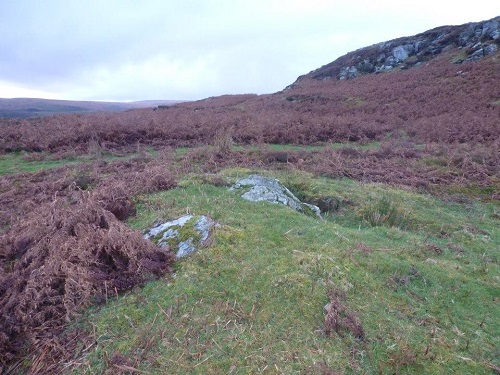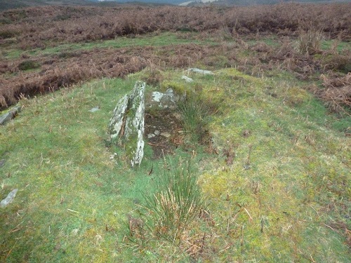 Y Glog Fawr Cairn, 5m in diameter, a Bronze Age round barrow cairn with cist. Map Ref: SN92150 66189